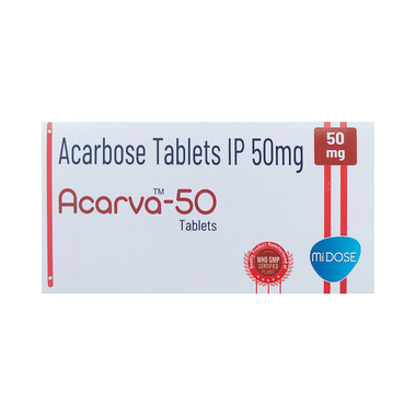 Acarva 50 Tablet should be taken just before or along with the first few bites of the meal. Your doctor will decide the dose and how often you need it to get the right amount to control your blood sugar levels. The dose may be increased gradually. Please do not stop taking it without consulting your doctor. If you do, your blood sugar levels may rise, putting you at risk of serious complications like kidney damage and blindness.