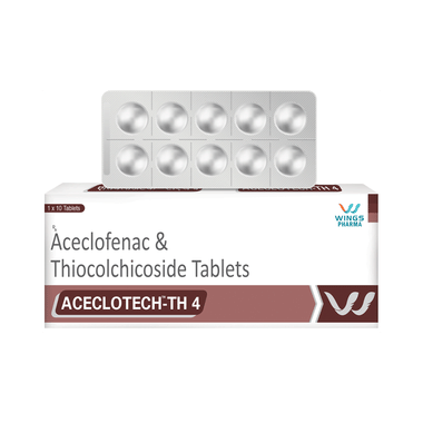 Aceclotech-TH Tablet is a combination of two medicines: Aceclofenac and Thiocolchicoside. This medication helps in relieving muscle pain. It relaxes the muscles by acting on the central nervous system and lowering chemical substance in the body that cause pain and inflammation.