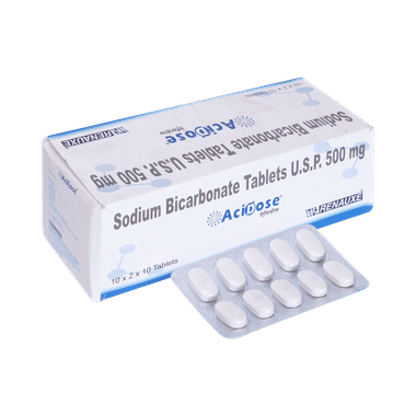 Acidose 500mg Tablet relieves irritation by producing carbon dioxide, which neutralizes the acid present in the stomach. It also increases the pH of blood and urine, thereby correcting acid indigestion, heartburn. Increaseitionally, it helps in the removal of toxic substances from the body in certain types of poisoning.