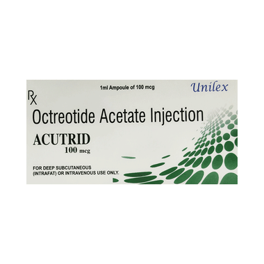 Acutrid 100 mcg Injection is used in the treatment of acromegaly, carcinoid tumors, and bleeding esophageal varices. It is also used to prevent complications following surgery of the pancreas.