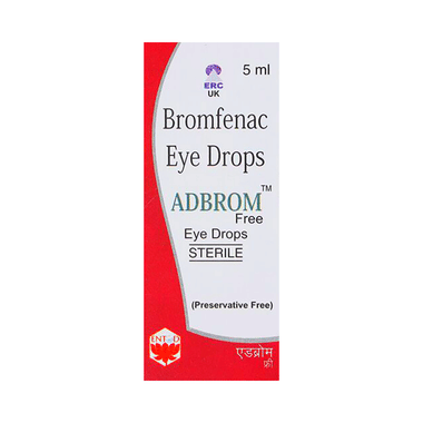 Adbrom Free Eye Drop is a pain-relieving medicine. It is used to treat postoperative eye pain and inflammation in patients who have undergone cataract surgery.Forever wash your hands before using Adbrom Free Eye Drop. Employ only the number of drops that your doctor has prescribed and wait for about five minutes between each drop. If you wear contact lenses, remove them before using the drops and wait for at least 15 minutes before putting them back in. You should not touch the tip of the dropper or bottle. This may lead to infection.