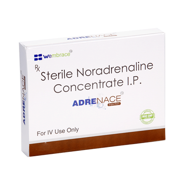 Adrenace Injection is used to treat hypotension (low blood pressure) that may occur due to causes such as sepsis (infection). It works by constricting blood vessels and increasing the pumping force of the heart. It may be used to revive a patient with cardiac arrest.