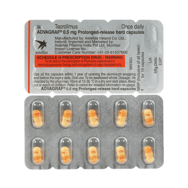 Find out detailed description, uses, directions of use, side effects, warnings and precautions, frequently asked questions about Advagraf 0.5mg Capsule PR
