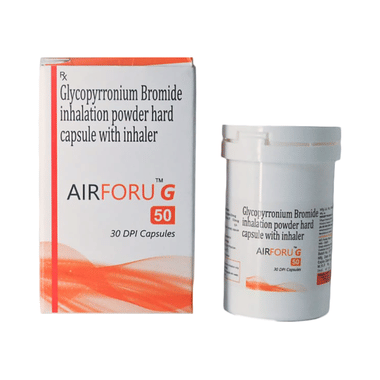 Airforu G DPI 50 Capsule is used to treat chronic obstructive pulmonary disease (COPD). This medicine helps the muscles around the lungs to stay relaxed and reduces symptoms like coughing, chest tightness, and shortness of breath.Your doctor will tell you how often you need to use Airforu G DPI 50 Capsule. Take it in the dose and duration instructed by your doctor. The effect of this medicine may be noticeable after a few days but will only reach its maximum after a few weeks. This medicine must be used regularly to be effective, so continue using it even if you do not have any symptoms. If you stop taking it your symptoms of COPD may get worse. It should not be used to relieve sudden breathing problems.