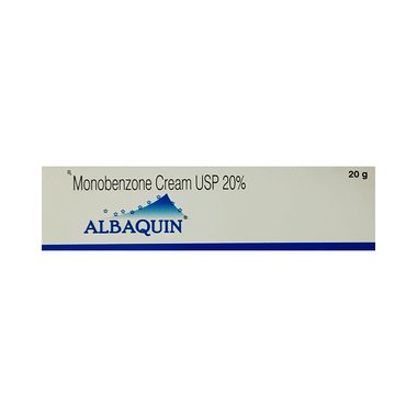 Albaquin 20% Cream is used for depigmentation. It is used to permanently lighten the skin in people with extensive vitiligo. It works by increasing the elimination of melanin from skin cells.Albaquin 20% Cream is for external use only. You should always use it exactly as your doctor has told you. You must wash your hands thoroughly before and after applying this medicine. This medicine should be used regularly to get the most benefit from it. Do not use more than you need as some side effects may be increased.