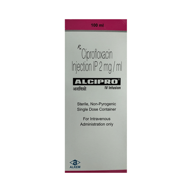 Alcipro 2mg/ml Infusion is an antibiotic, used in the treatment of bacterial infections. It is also used in treating infections of the urinary tract, nose, throat, skin and soft tissues, and lungs (pneumonia). It cures the infection by stopping further growth of the causative microorganisms.