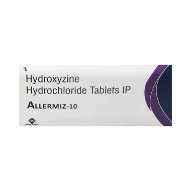 Allermiz 10 Tablet is used to treat symptoms of skin allergy like itching, swelling, and rashes in conditions such as eczema, dermatitis, and psoriasis. It is also used to treat anxiety and helps to relax before or after surgery.