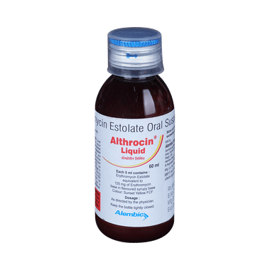 Althrocin Liquid is an antibiotic medicine that helps treat bacterial infections of the eye, ear, nose, throat, lungs, teeth, skin, and urinary tract. Also given as an alternative therapy to penicillin allergy, Althrocin Liquid may help treat certain specific infections such as pertussis (whooping cough) and diphtheria.