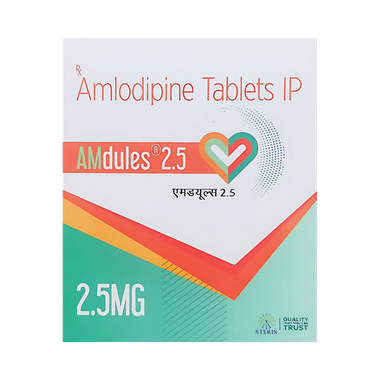 Amdules 2.5 Tablet belongs to a class of medicines known as calcium channel blockers. It is used to treat high blood pressure (hypertension) and prevent angina (heart-related chest pain). It lowers blood pressure and reduces the heart's workload, which helps prevent heart attacks and strokes.
