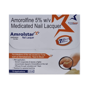 Amrolstar Nail Lacquer should be applied exactly as prescribed, usually to clean and dry nails. Apply it directly to the affected area and ensure to complete the course of treatment. Retain the affected area clean, dry, and well-ventilated for best results.