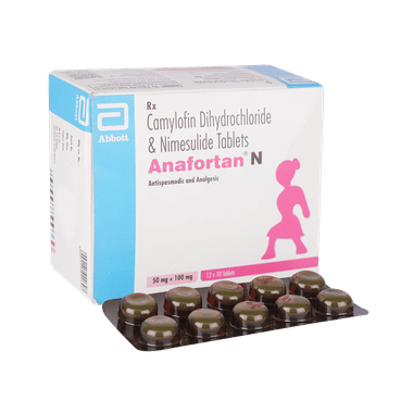 Anafortan N 100 mg/50 mg Tablet is a medicine used in the treatment of abdominal cramps. It relaxes the muscles in the stomach or intestine and stops sudden muscle contractions, thereby relieving cramps, pain, bloating, and discomfort.