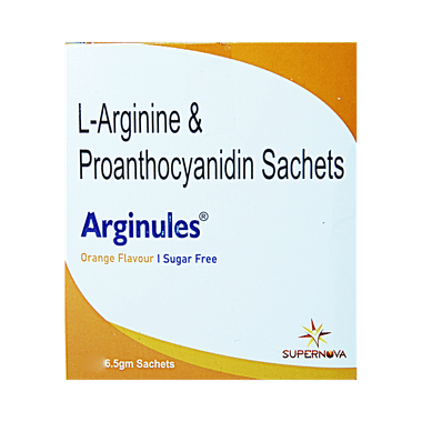 Arginules Sachet Orange Sugar Free is a combination medicine that is used in the treatment of nutritional deficiencies. It provides proper nutrition for adequate growth and development.Arginules Sachet Orange Sugar Free can be taken with or without food. It should be used in the dose and duration as prescribed by your doctor. It is advised to take this medicine at a fixed time. This medicine should not be taken in more than the recommended dose.
