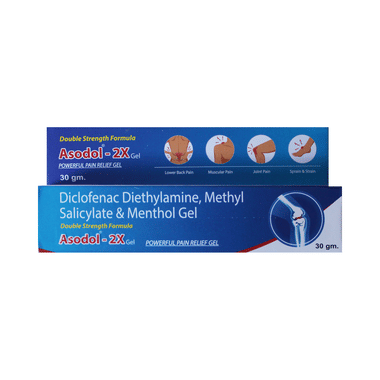 Asodol 2X Gel is only meant for external use and should be used strictly as advised by your doctor. A thin layer of the medicine should be rubbed into the affected areas with clean and dry hands. Avoid getting in contact with your eyes, nose, or mouth and avoid applying it on wounded or damaged skin. In case of accidental contact, rinse it with plenty of cold water.