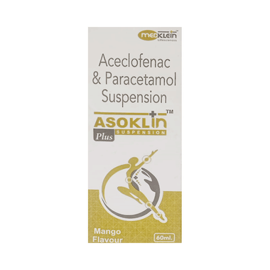 Asoklin Plus Oral Suspension Mango is a combination of two medicines: Aceclofenac and Paracetamol. It relieves pain and inflammation by lowering the levels of chemical substances in the body that cause them.
