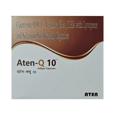 Find out detailed description, uses, directions of use, side effects, warnings and precautions, frequently asked questions about Aten-Q 10 Softgel Capsule