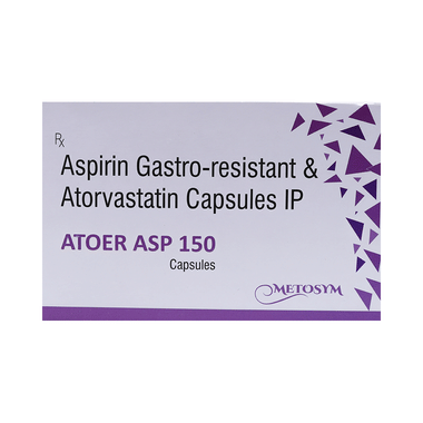 Atoer ASP 150 Capsule should be taken with food to avoid stomach upset. You should take it regularly at evenly spaced intervals as per the schedule prescribed by your doctor. Taking it at the same time every day will help you remember to take it. The dose and duration of treatment will depend on what you are being treated for. Do not stop taking it until you have finished the complete course, even when you feel better. Lifestyle changes like a low-fat diet, exercise, and not smoking may help this medicine work better.
