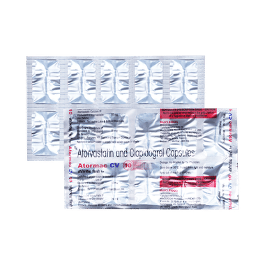 Atormac CV10 Capsule should be taken with food to avoid stomach upset. You should take it regularly at evenly spaced intervals as per the schedule prescribed by your doctor. Taking it at the same time every day will help you remember to take it. The dose and duration of treatment will depend on what you are being treated for. Do not stop taking it until you have finished the complete course, even when you feel better. Lifestyle changes like low-fat diet, exercise and not smoking may help this medicine to work better.