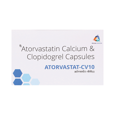 Atorvastat-CV 10 Capsule should be taken with food to avoid stomach upset. You should take it regularly at evenly spaced intervals as per the schedule prescribed by your doctor. Taking it at the same time every day will help you remember to take it. The dose and duration of treatment will depend on what you are being treated for. Do not stop taking it until you have finished the complete course, even when you feel better. Lifestyle changes like low-fat diet, exercise and not smoking may help this medicine to work better.