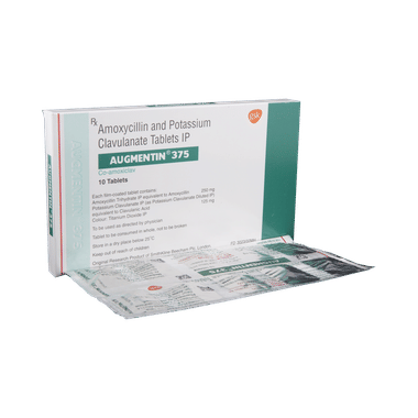 Augmentin 375 Tablet is a combination of two medicines (amoxycillin and clavulanic acid) used to treat bacterial infections, such as tonsillitis, sinusitis, otitis media, respiratory tract infections, urinary tract infections, boils, abscesses, cellulitis, wound infection, bone infection, and oral cavity infections. The medicine works by killing the harmful bacteria that cause infections.