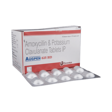 Augpen 625 BID Tablet is an antibiotic that helps your body fight infections caused by bacteria. It is used to treat infections of the lungs (e.g., pneumonia), the ear, the nasal sinus, the urinary tract, the skin, and the soft tissue. It will not work for viral infections such as the common cold.Augpen 625 BID Tablet is best taken with a meal to reduce the chance of a stomach upset. You should take it regularly at evenly spaced intervals as per the schedule prescribed by your doctor. Taking it at the same time daily will help you remember to take it. The dose will depend on what you are being treated for, but you should always complete an entire course of this antibiotic as your doctor prescribes. Please do not stop taking it until you have finished, even when you feel better. If you stop taking it early, some bacteria may survive, and the infection may return or worsen.