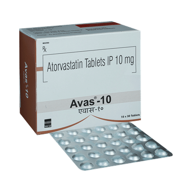Avas 10 Tablet belongs to a group of medicines called statins. It is used to lower cholesterol and to reduce the risk of heart disease. Cholesterol is a fatty substance that builds up in your blood vessels and causes narrowing, which may lead to a heart attack or stroke.Avas 10 Tablet is a widely prescribed medicine and is regarded as safe for long-term use when taken as per the doctor's advice. It can be taken with a meal or on an empty stomach. You can take it at any time of the day, but try to take it at about the same time each day. Most people with high cholesterol do not feel ill, but stopping the medicine may increase cholesterol levels, thereby increasing the risk of heart disease and stroke.