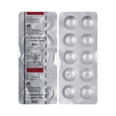 Belic 10 mg/325 mg Tablet is a combination medicine used in the treatment of abdominal pain. It works effectively to reduce abdominal pain and cramps by relaxing the muscles of the stomach and gut. It also blocks certain chemical messengers that cause pain and fever.