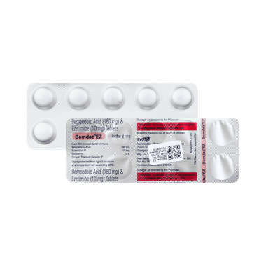 Bemdac EZ 180mg/10mg Tablet may be taken with or without food. However, take it in the exact dose and duration prescribed by your doctor. Also, continue taking this medicine for as long as the doctor prescribes it even if you feel better. If you stop taking the medicine abruptly, the symptoms may return. When used along with lifestyle changes, such as a healthy diet and regular exercise, this medicine can lower your cholesterol level effectively.