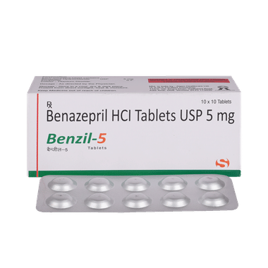 Benzil 5 Tablet belongs to a group of medicines known as angiotensin-converting enzyme (ACE) inhibitors. It is used to treat high blood pressure (hypertension). It relaxes and widens the blood vessels, making it easier for the blood to pass through the vessels. As a result of this, the heart does not have to work more to push the blood. Since the workload on the heart is reduced, it helps to lower the blood pressure and thus reduces the risk of heart attack and stroke.