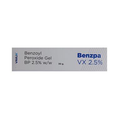Employ Benzpa VX 2.5% Gel only on your skin. Retain it away from areas like your eyes, eyelids, lips, mouth and inside of the nose. If the medicine comes in contact with any of these areas, wash the affected area with water immediately. Avoid using Benzpa VX 2.5% Gel on scratched or eroded skin and open wounds. Take care when using Benzpa VX 2.5% Gel on sensitive areas of skin such as your neck. Benzpa VX 2.5% Gel can make your skin more sensitive to the harmful effects of the sunlight. So, avoid the use of sunbeds/lamps and minimize the time you spend in the sun. You should use sunscreen and wear protective clothing while using Benzpa VX 2.5% Gel. Avoid contact with hair as Benzpa VX 2.5% Gel has bleaching properties. It can even bleach dyed or colored fabric, furniture or carpeting.