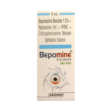 Bepomine Eye Drop (BAK Free) belongs to the class of medicines known as H1 antihistamines. It is used to prevent and treat symptoms of eye allergies such as itching, redness, irritation or burning sensation.