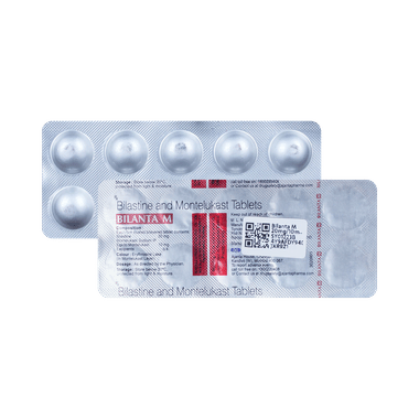 Bilanta M 20mg/10mg Tablet is a combination medicine used to treat allergic rhinitis, commonly known as hay fever. It helps relieve symptoms like sneezing, runny or blocked nose, itching, and watery eyes. It provides effective relief from allergy symptoms and improves breathing.