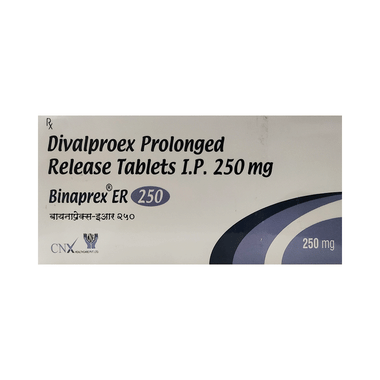 Binaprex ER 250 Tablet is a medication used to treat epilepsy, seizures, bipolar disorder, mania, trigeminal neuralgia, and migraines. It works by stabilizing brain activity. Forever use it under medical supervision for safe and effective treatment.