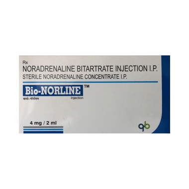 Bio-Norline Injection is used to treat hypotension (low blood pressure) that may occur due to causes such as sepsis (infection). It helps to increase blood pressure by narrowing the blood vessels of the heart. It may be used to revive a patient with cardiac arrest.