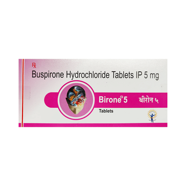 Birone 5 Tablet is used for the treatment of anxiety disorder. It alters the chemicals in the brain that cause symptoms of anxiety such as irritability, restlessness, lack of concentration, fatigue, sweating, increased heart rate, and unwanted or racing thoughts.
