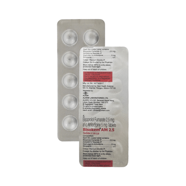 Find out detailed description, uses, directions of use, side effects, warnings and precautions, frequently asked questions about Bisokem AM 5mg/2.5mg Tablet