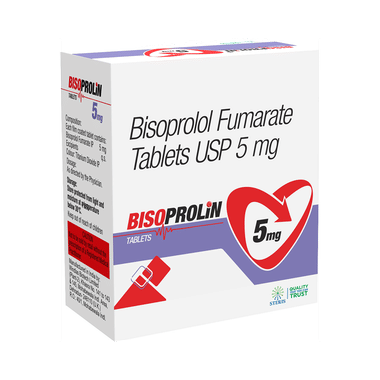 Bisoprolin 5 Tablet helps improve cardiac output and prevent heart failure progression. It helps regulate blood pressure, enhances blood flow, and supports overall cardiovascular health. This makes it essential to post-myocardial infarction (heart attack) care, ensuring long-term heart protection. It may also be used to relieve the symptoms caused by an overactive thyroid gland.