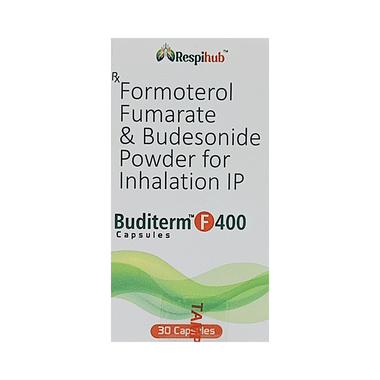 Buditerm F 400 Capsule is a combination of two medicines in one inhaler. It relieves the long-term symptoms of asthma and COPD, making breathing easier. It works by inhibiting the release of certain chemical messengers that cause inflammation (swelling) and relaxes the muscles in the airways.