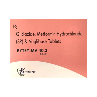 Bytey-MV 40.3 Tablet SR belongs to a category of medicines known as anti-diabetic drugs. It is a combination of medicines used to treat type 2 diabetes mellitus in adults. It helps control blood sugar levels in people with diabetes.Bytey-MV 40.3 Tablet SR should be taken without food. Take it regularly at the same time each day to get the most benefit. Your doctor will decide what dose is best for you, and this may change from time to time according to how it is working according to your blood sugar levels.