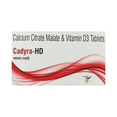 Cadyra-HD Tablet is a nutritional supplement used in the treatment of calcium deficiency. It is prescribed when your diet alone cannot provide the necessary calcium your body needs. It increases the absorption of calcium and helps prevent or treat low blood calcium levels.