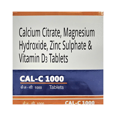 Cal-C 1000 Tablet may be taken with or without food. Take it in the dose and duration advised by the doctor. Take it regularly at the same time each day to get maximum benefits from it. Do not take it more than or longer than prescribed by the doctor, as that may cause harmful effects.