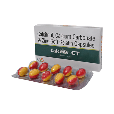 Calcifav-CT Softgel Caspule is a combination of medicines that is used to treat nutritional deficiencies. It helps in the absorption of calcium and bone strengthening. It helps in proper growth and development of bones. It also helps in protein synthesis and the production of blood cells (red and white blood cells).