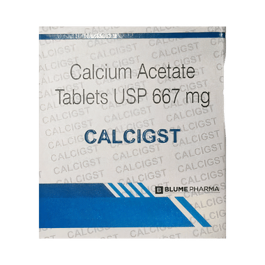 Calcigst Tablet is a medicine used to treat high phosphate levels in the blood. It helps to lower the phosphate levels in the blood and prevents complications, particularly in people with kidney failure who are on dialysis and are unable to get rid of excess phosphate levels.