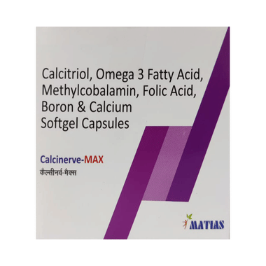 Find out detailed description, uses, directions of use, side effects, warnings and precautions, frequently asked questions about Calcinerve-Max Softgel Capsule