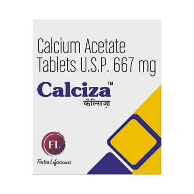 Calciza Tablet is a medicine used as a dietary supplement of calcium. It helps in treating calcium deficiency in the body, thereby reducing the risk of calcium disorders. It also helps keep the bones strong and reduces spasms of the hands and feet.Calciza Tablet can be taken in an empty stomach or along with food. Take it regularly in the dose and duration as advised by the doctor. Calciza Tablet is well tolerated with little or no side effects. Tell your doctor before taking the medicine if you have any kidney disorders.