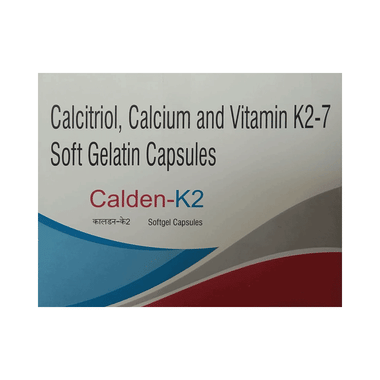 Calden-K2 Softgel Capsule is a medicine used in the treatment of calcium deficiency. It increases the levels of vitamin D in your blood which in turn raises calcium levels in the blood by helping in the absorption of more calcium. It also helps in the treatment and prevention of osteoporosis.Calden-K2 Softgel Capsule is a supplement that provides extra calcium to the body. It is beneficial in increasing muscle mass, osteoporosis and in the prevention and treatment of hypocalcemia. It also helps in reducing fatigue and muscular pains. It boosts immunity and helps you maintain healthy bones. It is generally safe with little or no side effects. However, if you experience any symptoms on taking this medicine, let your doctor know.