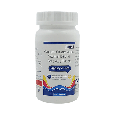 Calostyle CCM Tablet helps keep bones and teeth strong. It is used to prevent or treat calcium and vitamin D deficiencies. It also supports a healthy pregnancy, breastfeeding, and proper growth in children. This supplement provides important nutrients like calcium for strong bones, vitamin D3 to help the body absorb calcium, and folic acid to support healthy blood and cell function.