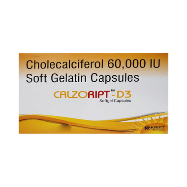 Find out detailed description, uses, directions of use, side effects, warnings and precautions, frequently asked questions about Calzoript-D3 Softgel Capsule