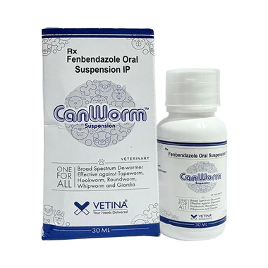 Canworm Oral Suspension Pet is used to help treat and control internal parasite infections, commonly known as worm infections, in animals. It is effective against several types of worms, such as roundworms, hookworms, whipworms, certain tapeworms, and lungworms.