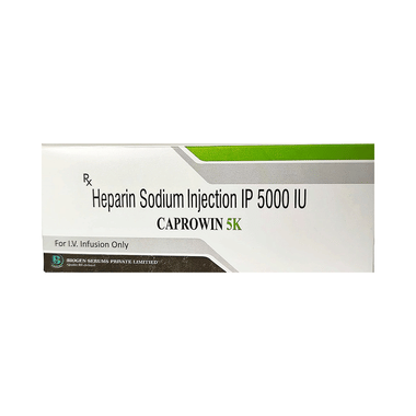 Caprowin 5K Injection is an anticoagulant which prevents abnormal clotting of blood. It not only prevents the formation of harmful blood clots in the legs, lungs, and heart but also stops them from growing bigger.