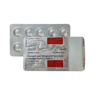 Find out detailed description, uses, directions of use, side effects, warnings and precautions, frequently asked questions about Cardace Meto 25mg/2.5mg Tablet